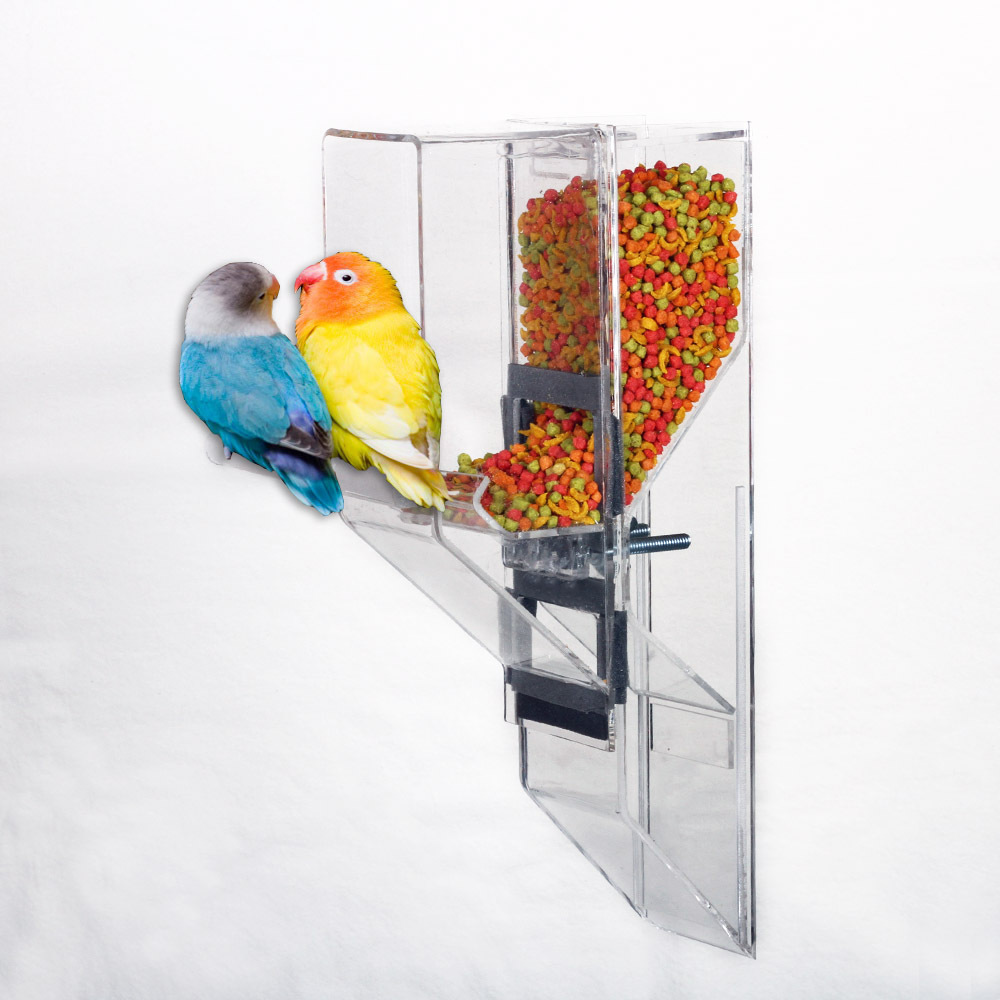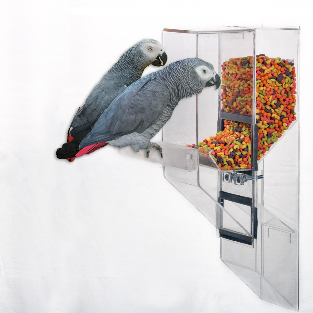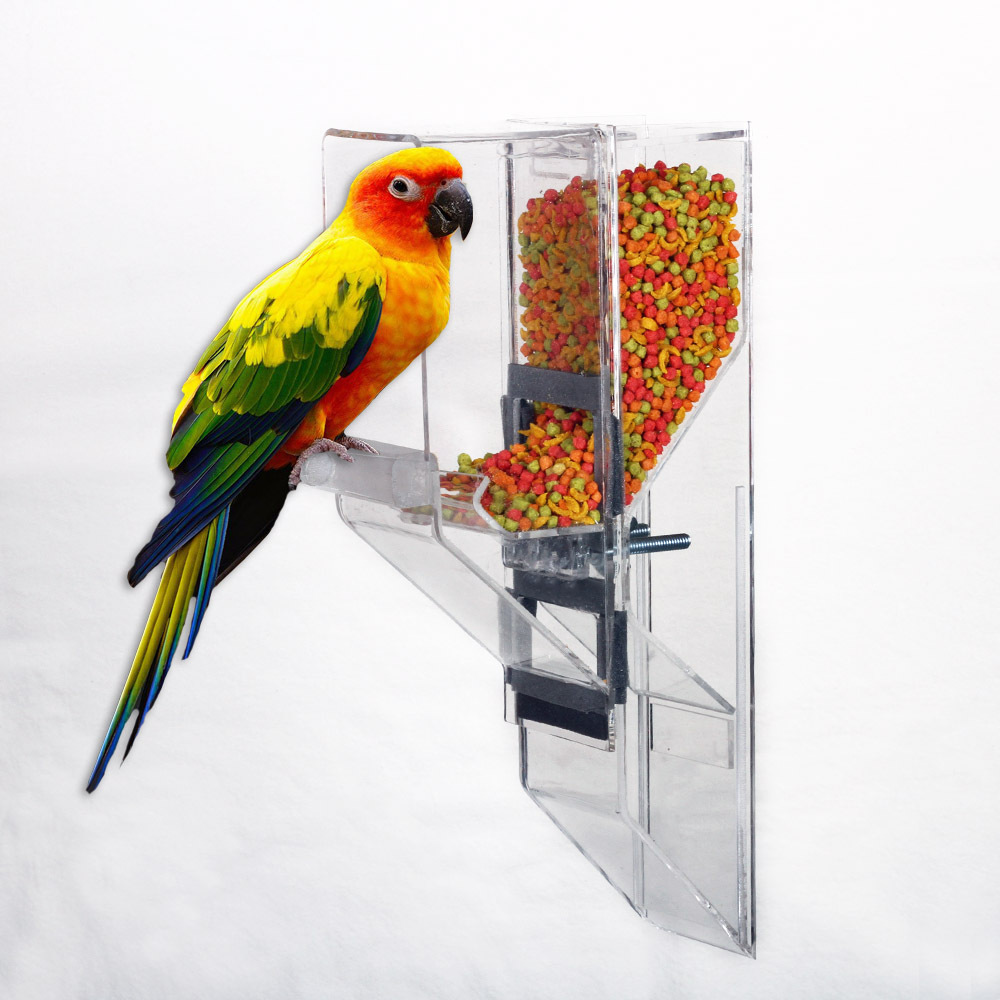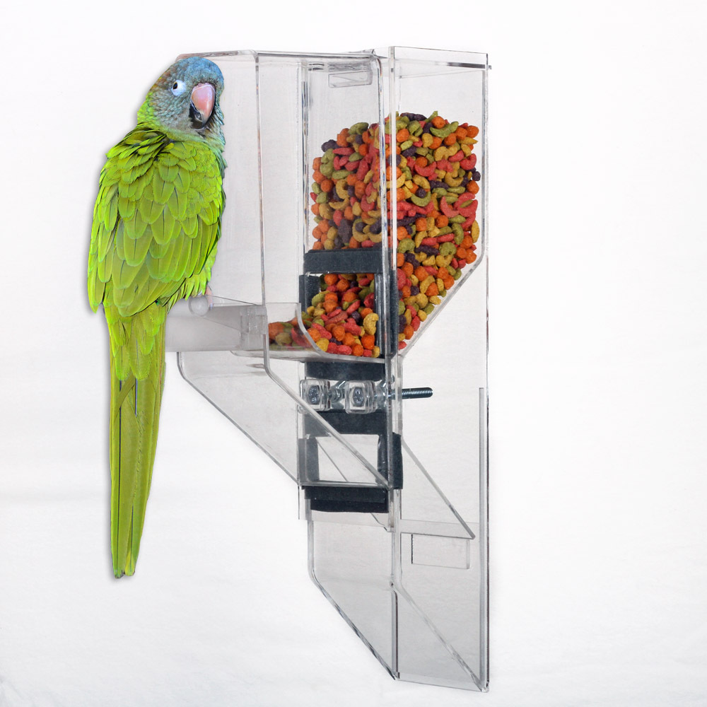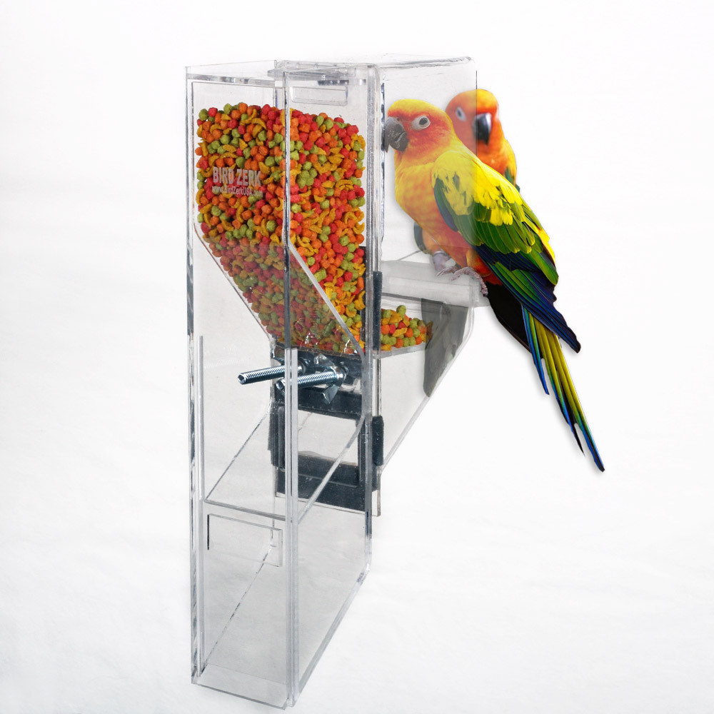 The Ex-Large is designed for the largest sized birds up to the Hyacinth Macaw, including Mollucan Cockatoo, Blue & Gold, Scarlet, and Green Wing, etc. The feeder works with a single bird, as well as breeders. ***Made of 1/4" thick acrylic.