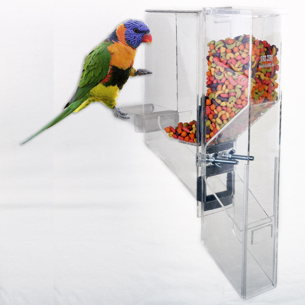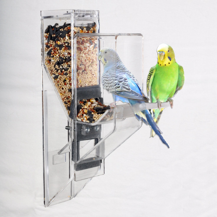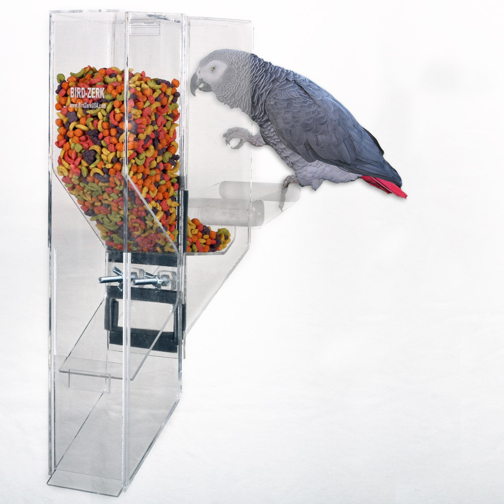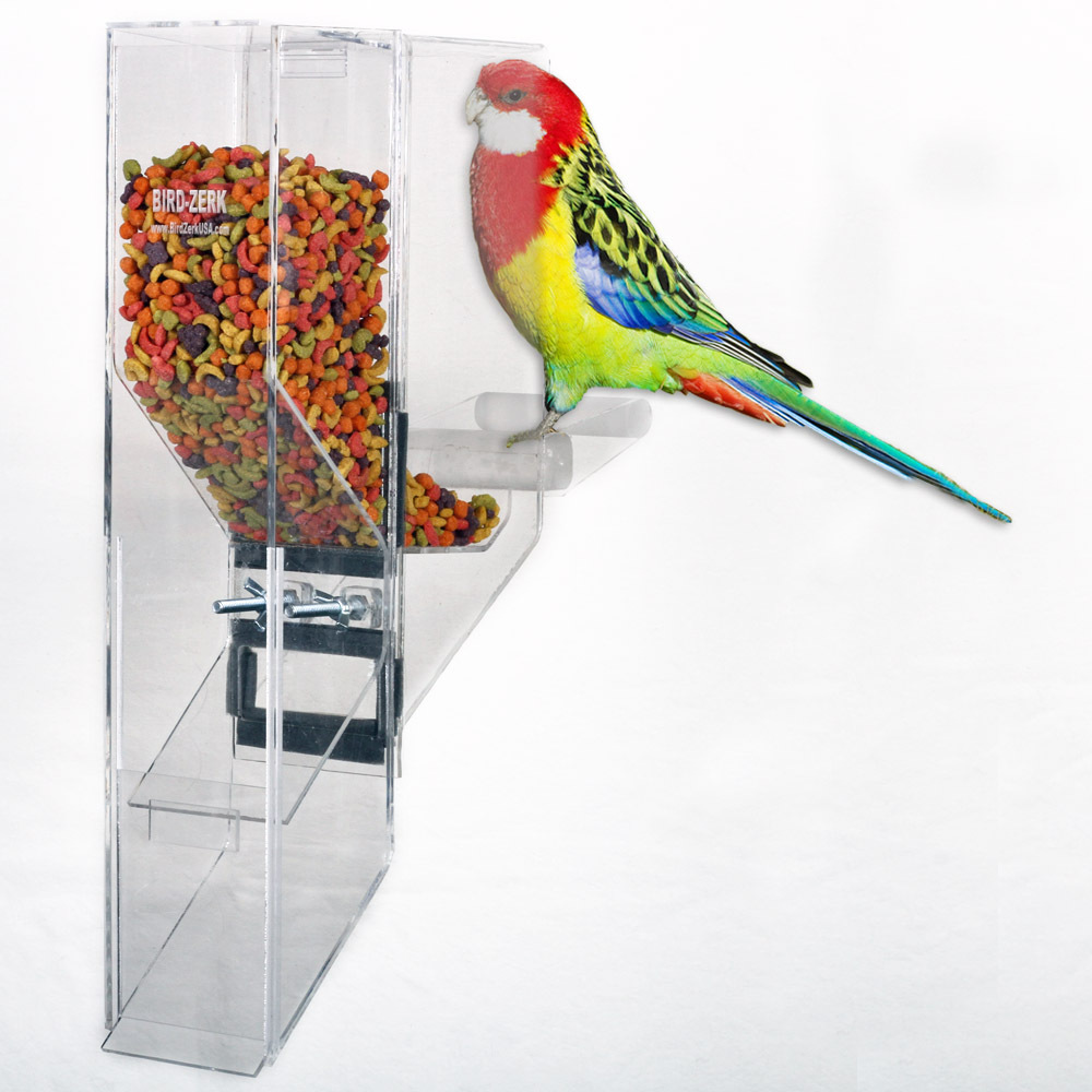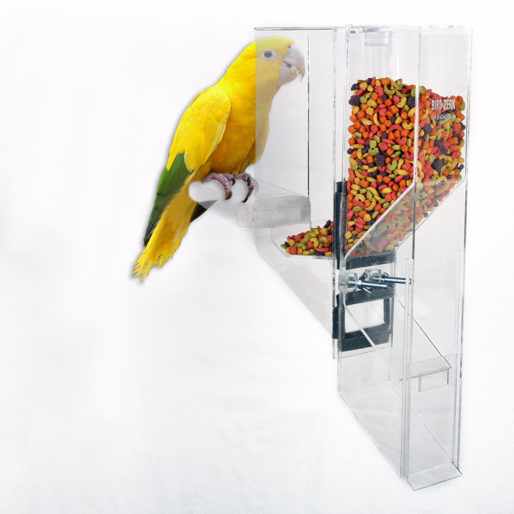 The Ex-Large is designed for the largest sized birds up to the Hyacinth Macaw, including Mollucan Cockatoo, Blue & Gold, Scarlet, and Green Wing, etc. The feeder works with a single bird, as well as breeders. ***Made of 1/4" thick acrylic.
