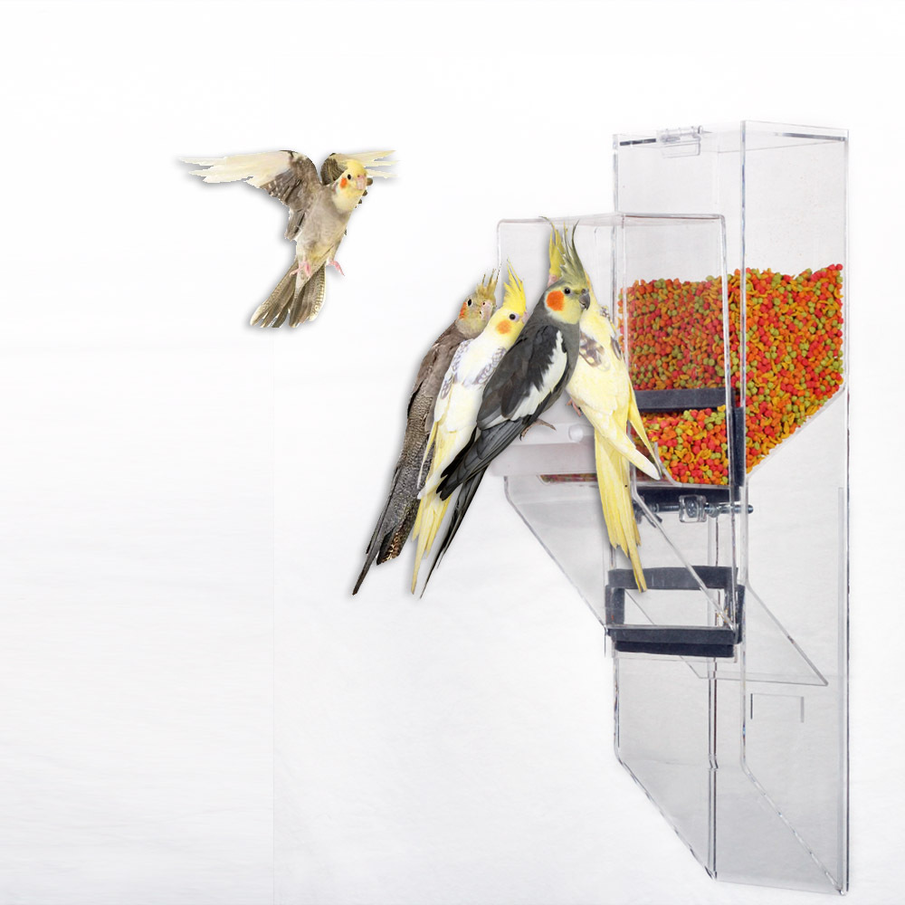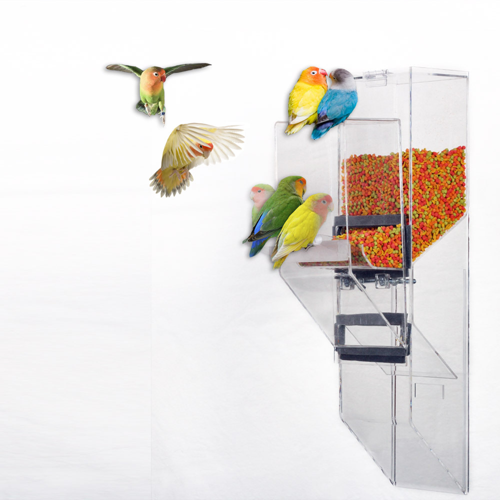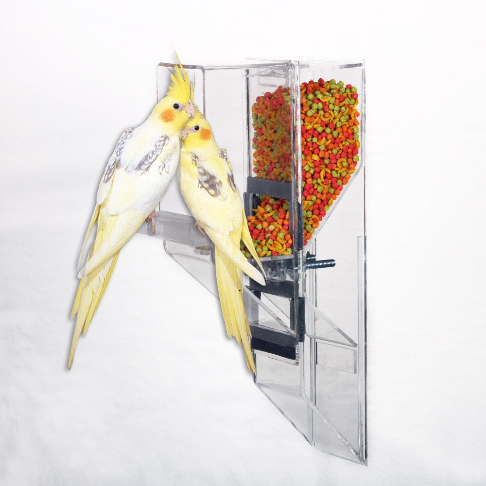 The PET is designed for small birds up to one Cockatiel, including Finches and Parakeets, as well as a breeding pair of smally birds, such as Lovebirds, Parrotlets, Green Cheek Conures, etc. Made of 1/8" thick acrylic.